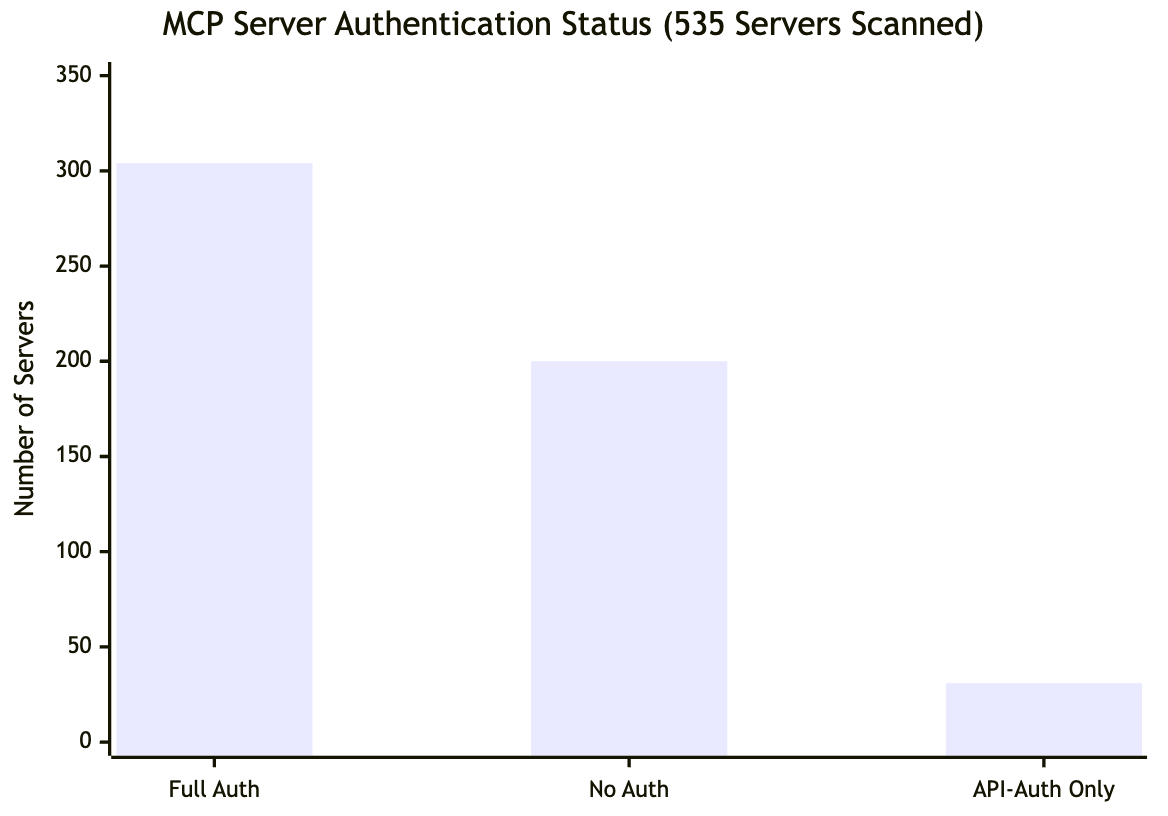 38% of servers have no authentication at the MCP protocol level. That translates to over 200 servers where any AI agent, or any HTTP client, can enumerate every available tool and, in many cases, execute them directly.